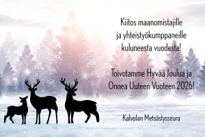 Hirvenmetsästysaika alkoi 12.10.2024, ja Kalvolan metsästysseuran kauden ensimmäiset jahdit olivat viikonloppuna 19.-20.10.2024.
